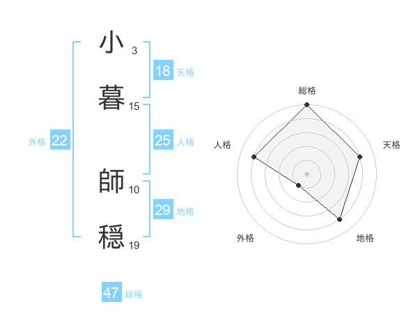 小暮 師穏さんを姓名の画数から五運を鑑定
