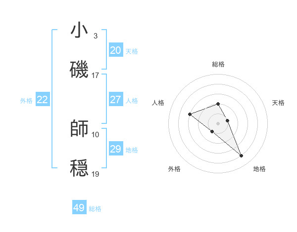 小磯 師穏さんの総格は49画の2点!