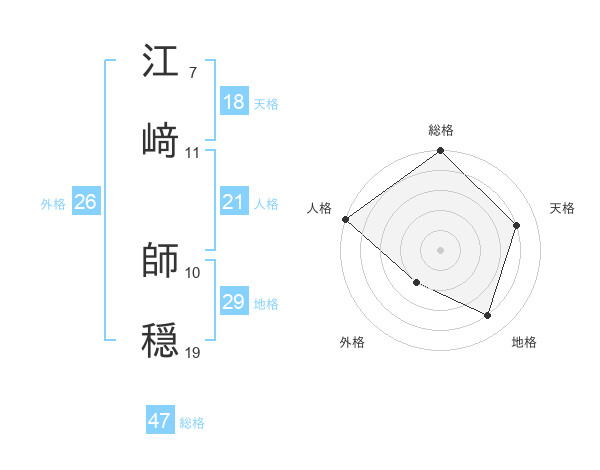 江﨑 師穏さんの総格は47画の5点!