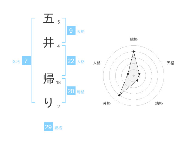 五井 帰りさんの総格は29画の4点!