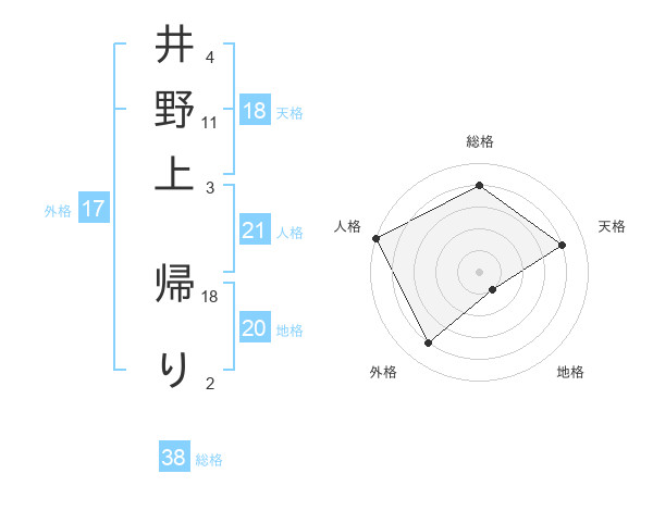 井野上 帰りさんの総格は38画の4点!
