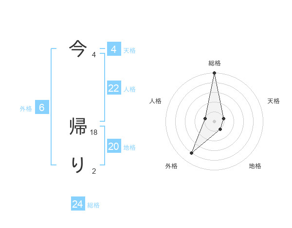 今 帰りさんの総格は24画の5点!