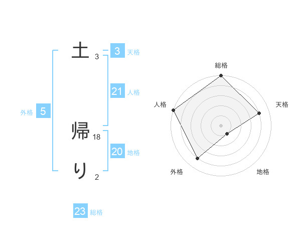 土 帰りさんの総格は23画の5点!