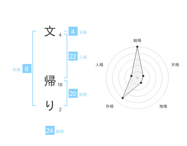 文 帰りさんの地格は20画の1点!