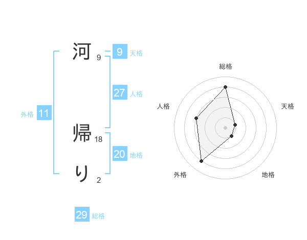 河 帰りさんの総格は29画の4点!