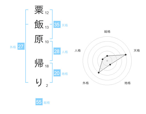 粟飯原 帰りさんを姓名の画数から五運を鑑定