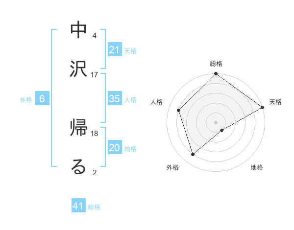 中沢 帰るさんの総格は41画の5点!