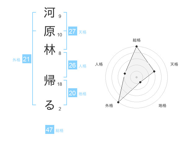 河原林 帰るさんを姓名の画数から五運を鑑定