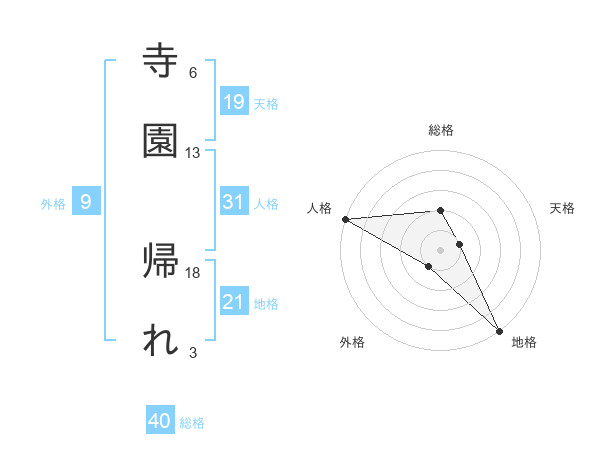 寺園 帰れさんの地格は21画の5点!