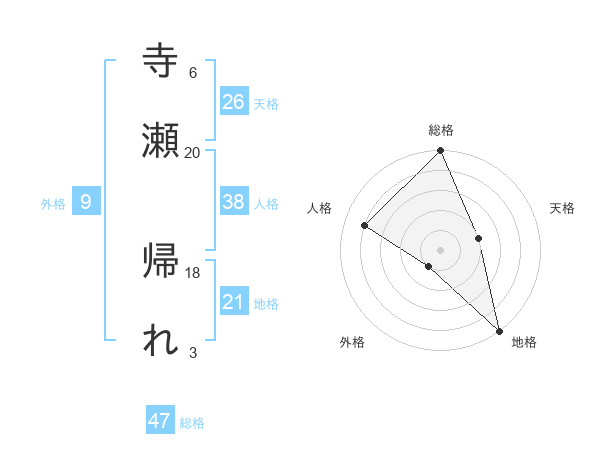 寺瀬 帰れさんの総格は47画の5点!