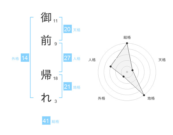 御前 帰れさんの総格は41画の5点!
