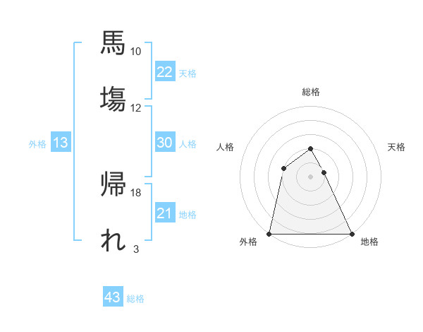 馬塲 帰れさんの外格は13画の5点!