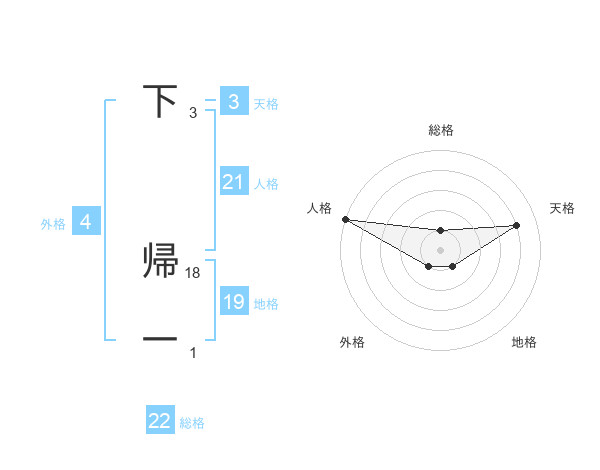 下 帰一さんの総格は22画の1点!