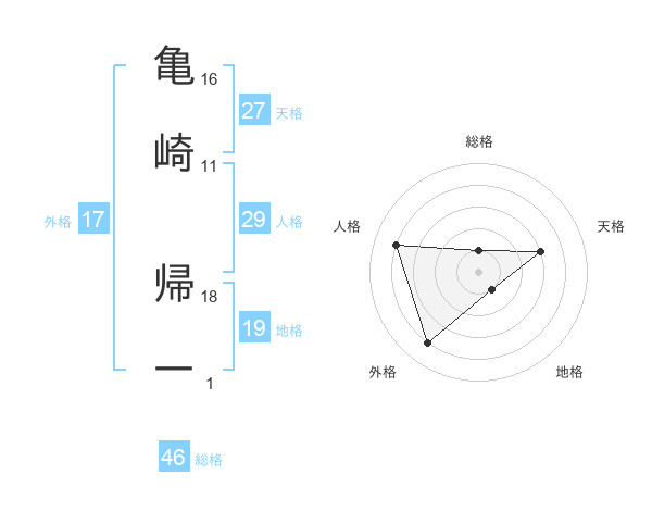 亀崎 帰一さんを姓名の画数から五運を鑑定