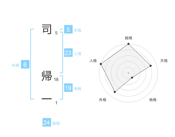 司 帰一さんの総格は24画の5点!