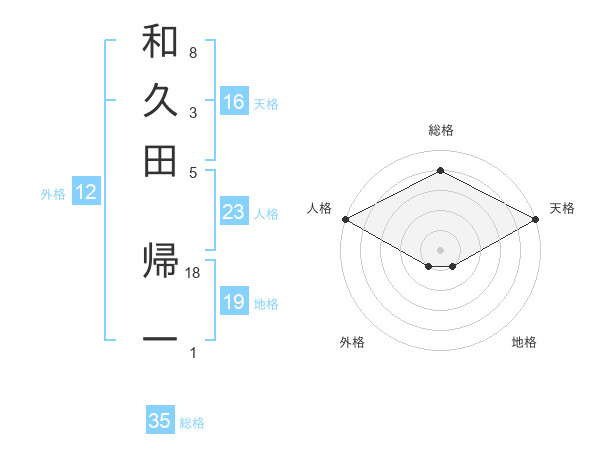 和久田 帰一さんを姓名の画数から五運を鑑定