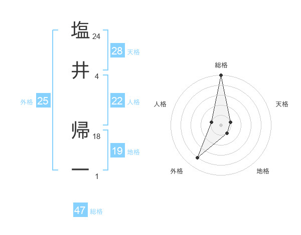 塩井 帰一さんを姓名の画数から五運を鑑定
