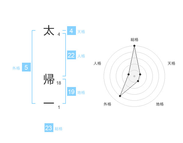 太 帰一さんの総格は23画の5点!