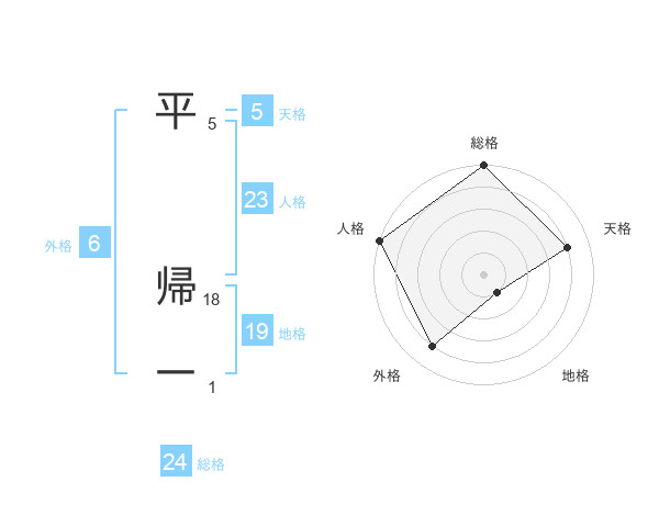 平 帰一さんの総格は24画の5点!