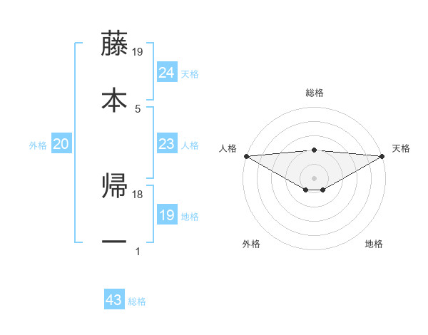 藤本 帰一さんを姓名の画数から五運を鑑定