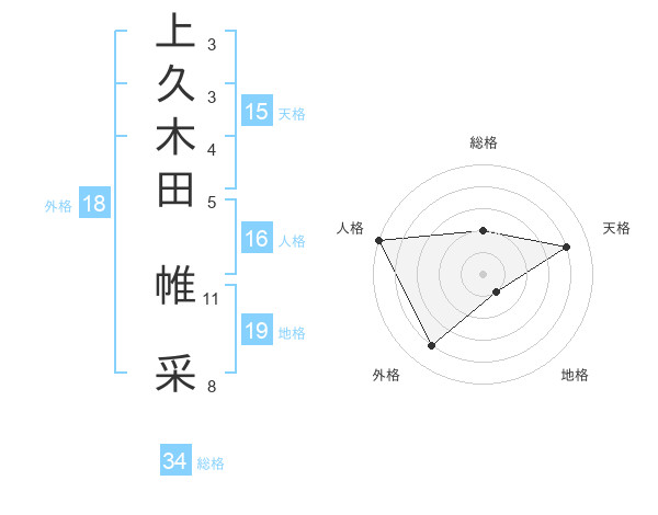 上久木田 帷采さんの天格は15画の4点!