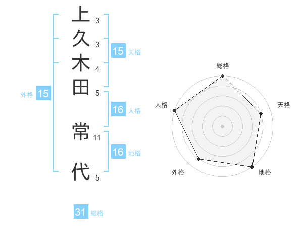 上久木田 常代さんを姓名の画数から五運を鑑定