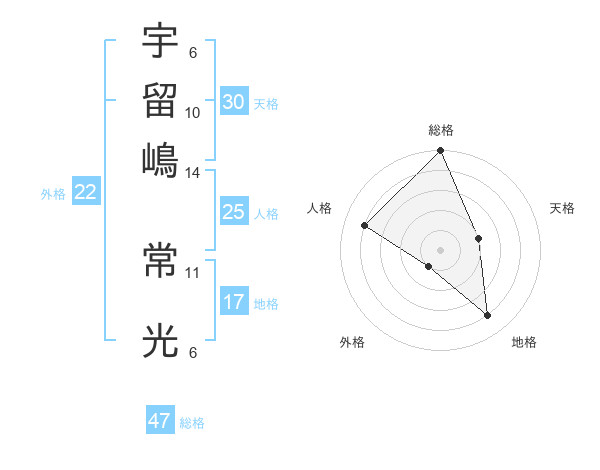 宇留嶋 常光さんを姓名の画数から五運を鑑定