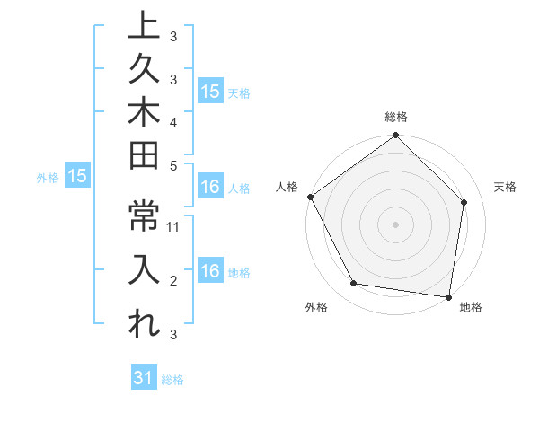 上久木田 常入れさんを姓名の画数から五運を鑑定