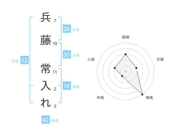 兵藤 常入れさんを姓名の画数から五運を鑑定