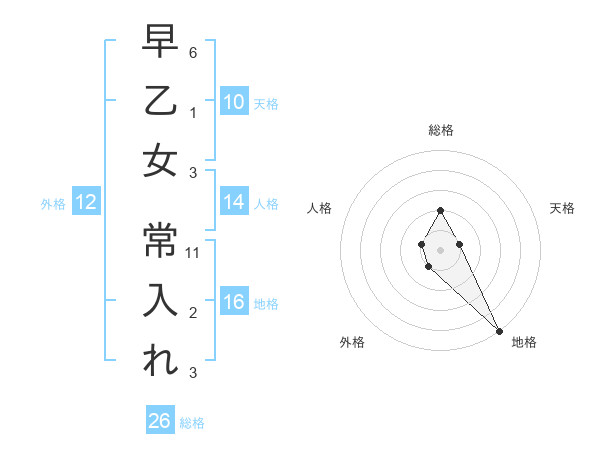早乙女 常入れさんを姓名の画数から五運を鑑定