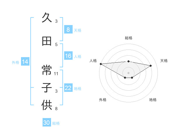 久田 常子供さんの総格は30画の2点!