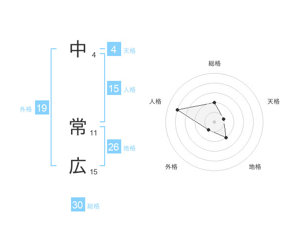 中 常広さんの総格は30画の2点!