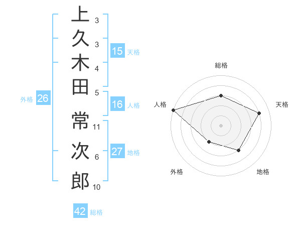 上久木田 常次郎さんを姓名の画数から五運を鑑定