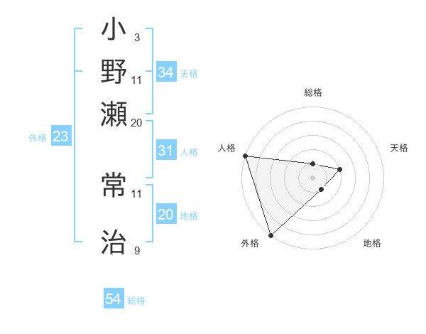 小野瀬 常治さんを姓名の画数から五運を鑑定