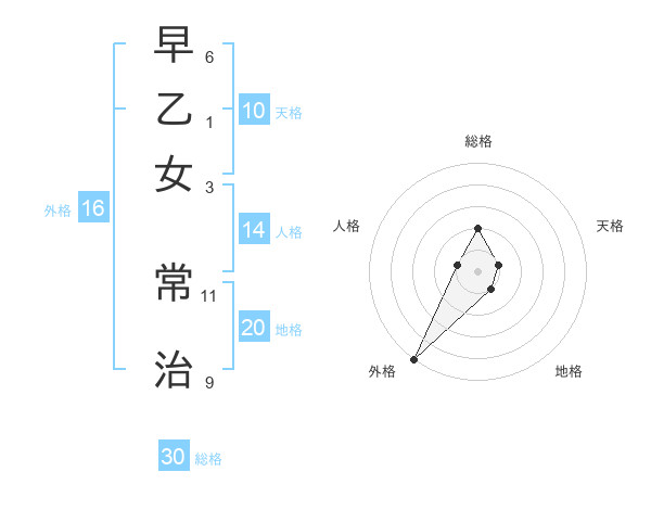 早乙女 常治さんを姓名の画数から五運を鑑定