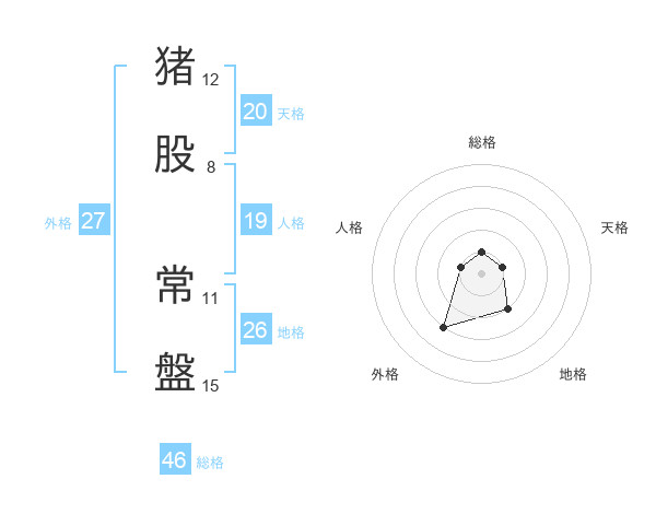 猪股 常盤さんを姓名の画数から五運を鑑定