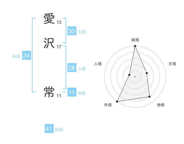 愛沢 常さんの総格は41画の5点!