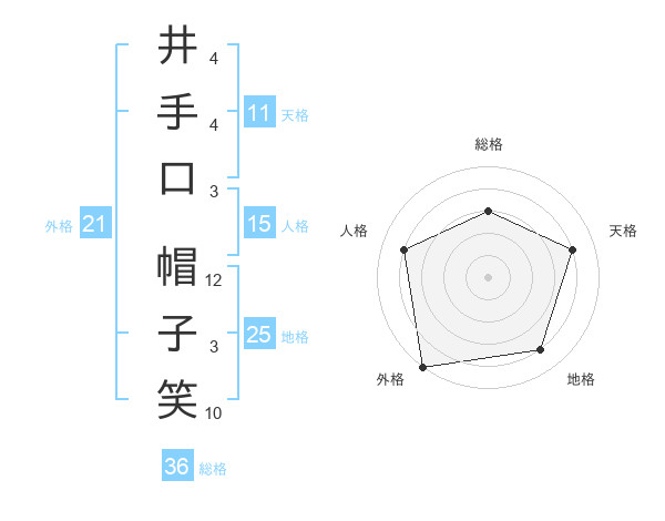 井手口 帽子笑さんを姓名の画数から五運を鑑定