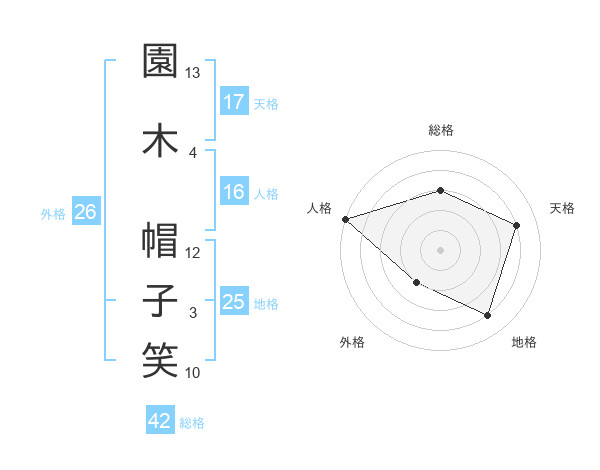 園木 帽子笑さんを姓名の画数から五運を鑑定