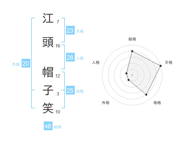 江頭 帽子笑さんを姓名の画数から五運を鑑定