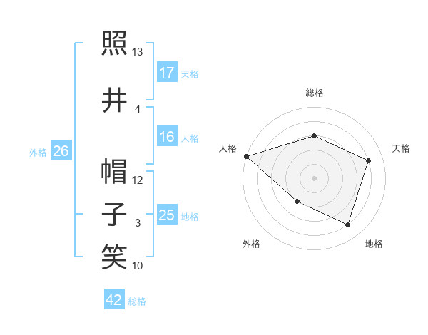 照井 帽子笑さんの天格は17画の4点!