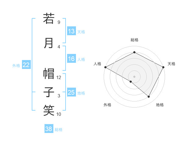 若月 帽子笑さんを姓名の画数から五運を鑑定