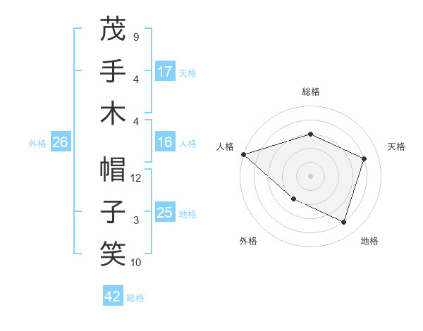 茂手木 帽子笑さんを姓名の画数から五運を鑑定