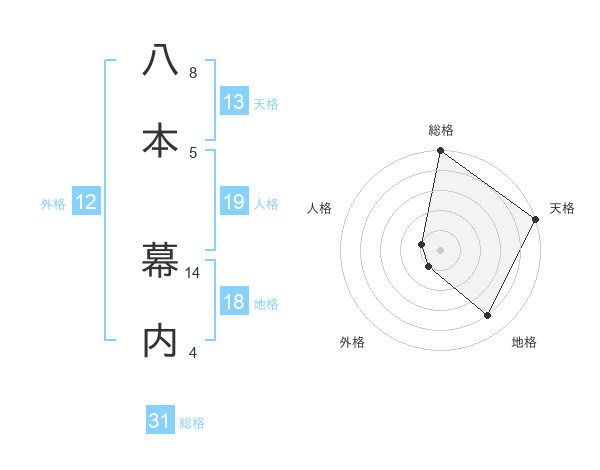 八本 幕内さんの総格は31画の5点!