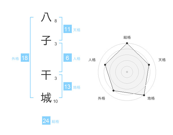 八子 干城さんの総格は24画の5点!
