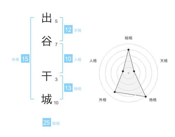 出谷 干城さんの総格は25画の4点!