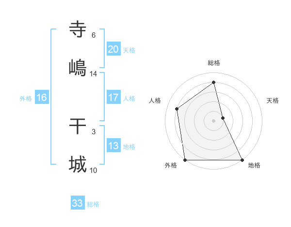 寺嶋 干城さんの総格は33画の4点!