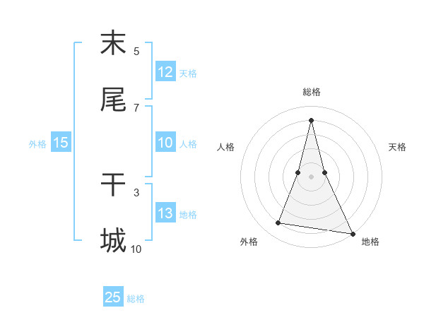 末尾 干城さんの総格は25画の4点!