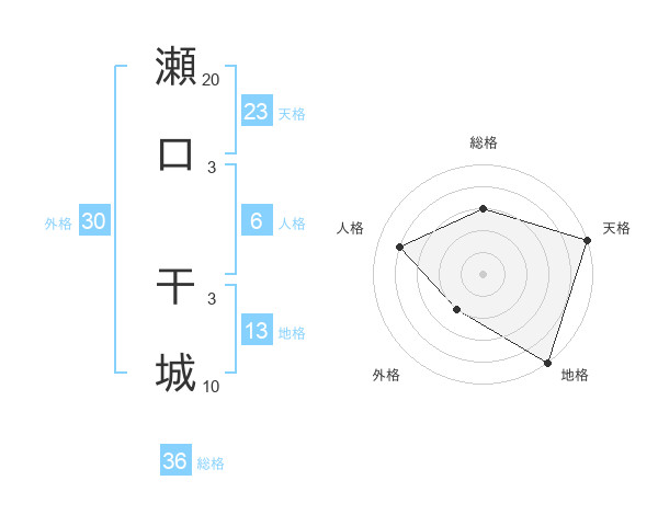 瀬口 干城さんの総格は36画の3点!