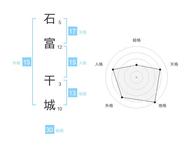 石富 干城さんの地格は13画の5点!